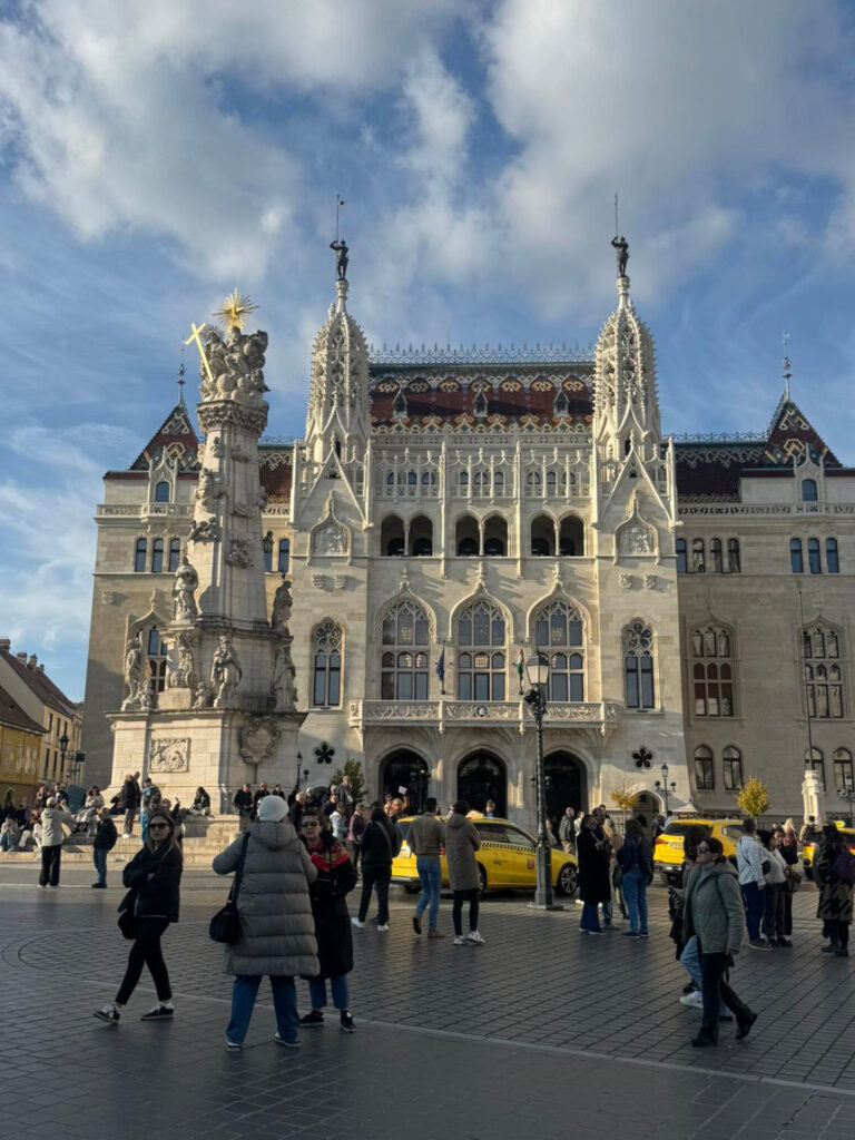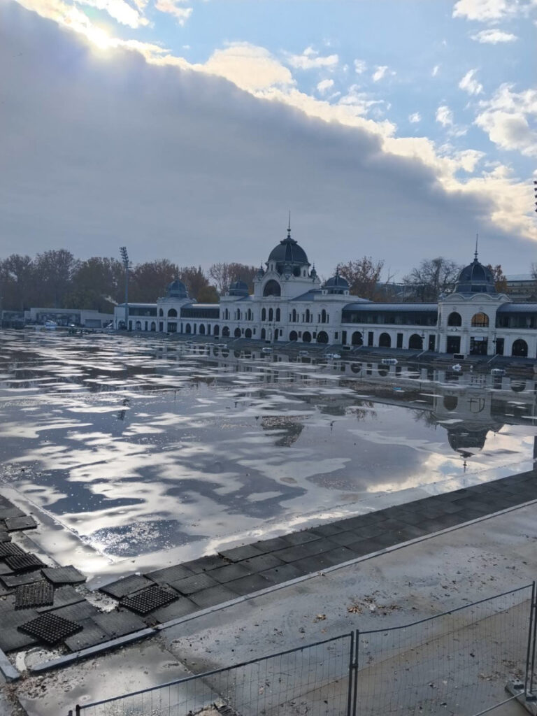Ακόμη και όταν η λίμνη είναι άδεια, η ατμόσφαιρα είναι επιβλητική. Στο βάθος, το κτίριο που βλέπετε είναι το Παλάτι του Παγοδρομίου, με την κομψή νεο – μπαρόκ αρχιτεκτονική του και τους χαρακτηριστικούς του τρούλους. Είναι ένα αρχιτεκτονικό στολίδι που αντικατοπτρίζεται στα λιμνάζοντα νερά, υποσχόμενο ατελείωτες ώρες διασκέδασης όταν ο πάγος καλύψει την επιφάνεια. Είναι ένα σημείο όπου οι ντόπιοι και οι επισκέπτες ζουν την εποχιακή μαγεία της πόλης. Στην κεντρική Πέστη, η πλατεία μπροστά από το Δημαρχείο της Βουδαπέστης προσφέρει ένα θέαμα που κόβει την ανάσα.